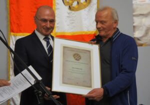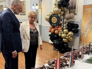 Naime, nakon više od dva desetljeća s dužnosti predsjednika Udruge Zlatna šajba, radi zdravstvenih problema, odstupio je Dubravko Viduč, inicijator i idejni začetnik brojnih “malih” događanja i aktivnosti udruge, koje su tijekom godina, zahvaljujući njegovoj profesionalnosti, predanosti i organizaciji, dovele udrugu, a posljedično i Grad Samobor, na sam vrh po pitanju kvalitete i uređivanja sustava proizvodnje i ocjenjivanja ovih suhomesnatih proizvoda u Hrvatskoj, ali i daleko šire. Stoga su mu svi velikim pljeskom poslali topli pozdrav i želje za što bržim oporavkom.